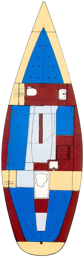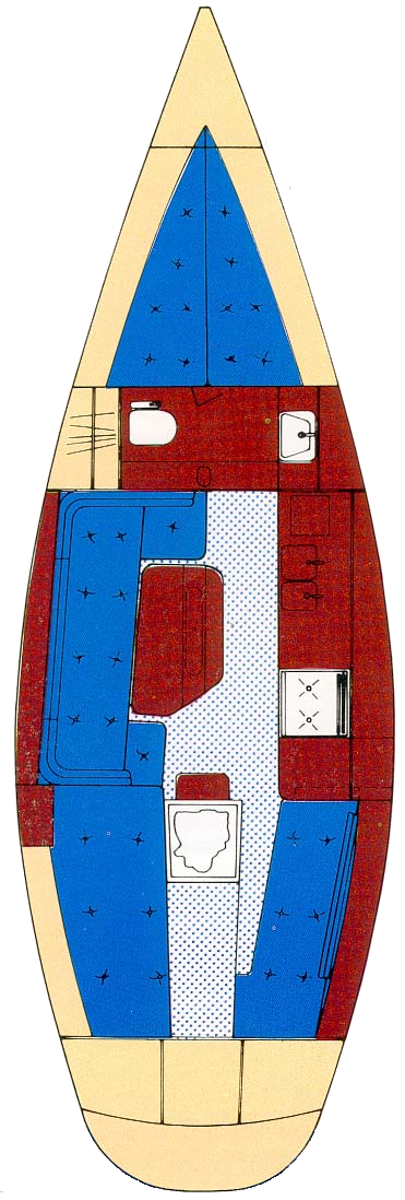 | Engine (standard) | Yanmar 1GM10 | By now oftentimes replaced with bigger engines like Yanmar 2GM20(F), 2YM15, Volvo Penta, Vetus or Lombardini. Reviews suggest that a stronger and/or fresh water cooled engine (2GM20(F)) could be ordered as an option. Some owners deem the original 1GM10 sufficient, but most suggest an upgrade. All boats came with a fixed shaft (25mm diameter) and a 2-blade folding propeller (which needs to be replaced when the engine is upgraded). |